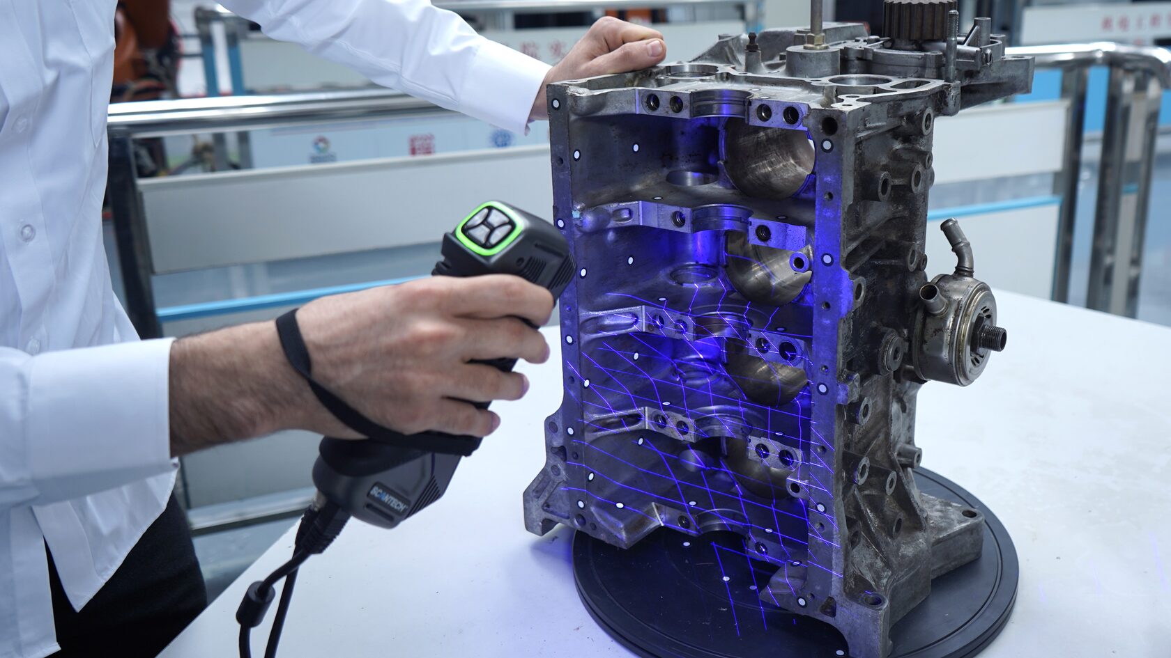 Фотограмметрия, то есть сбор меточного каркаса с повышенной точностью с помощью широкоугольной камеры, эталонных линеек и, иногда, специальных закодированных маркеров используется при работе с крупногабаритными объектами (от 1,5м), и может быть реализована в 3D-сканировании следующими способами: